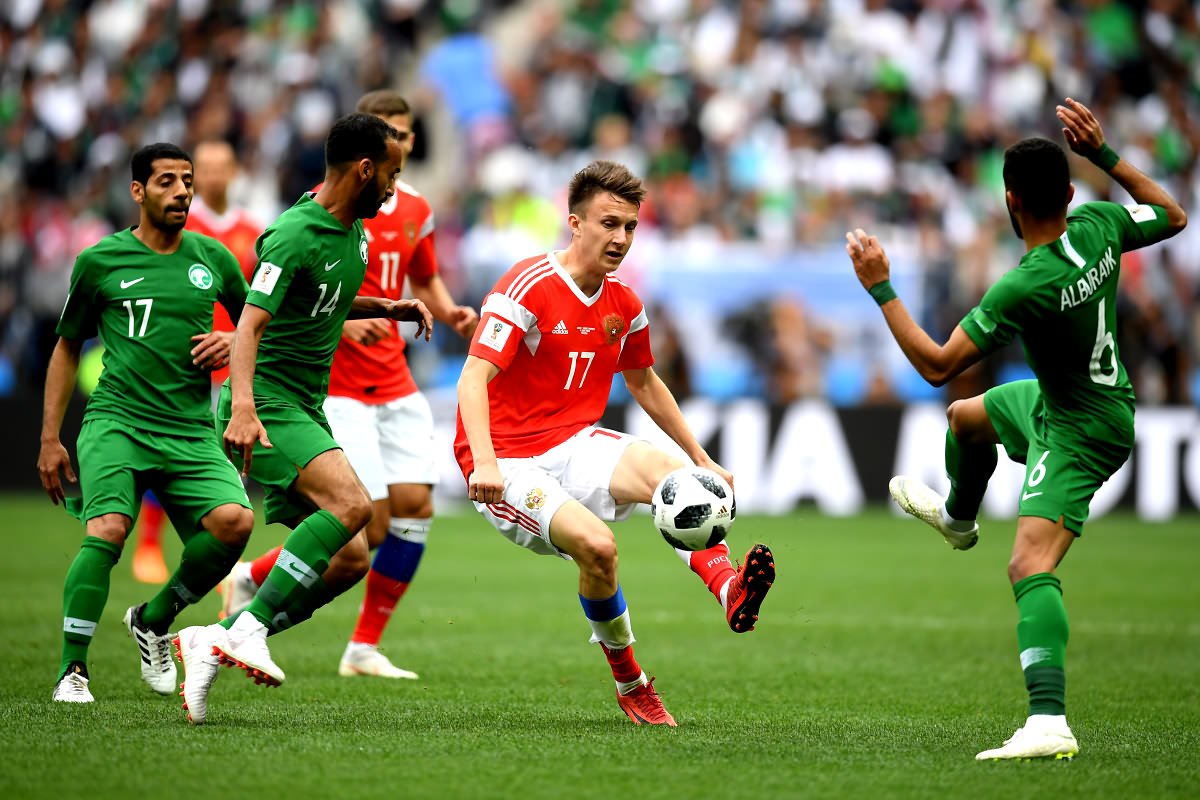 Большую часть матча соперники контролировали мяч, но без него игра у них не ладилась. Ошибка за ошибкой в обороне. Этим и пользовалась сборная России. Футболисты прессинговали саудовцев, отбирали мяч, шли в контратаку и пробивали.
