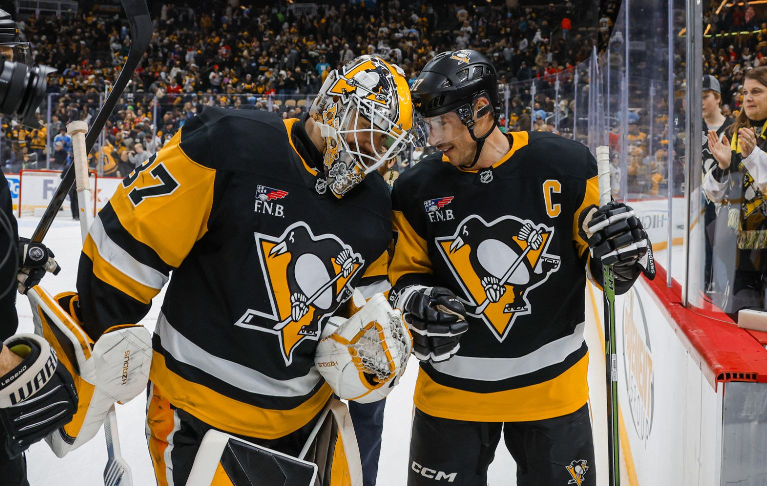 У хозяев заброшенными шайбами отметились Сидни Кросби, Рикард Ракелль и Ноэль Аччари. Победный буллит на счету Ракелля. По точному броску в составе гостей нанесли Оливер Капанен, Иван Демидов и Ноа Добсон.