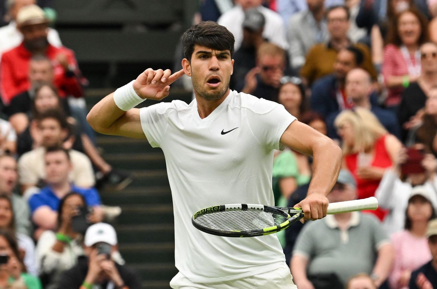 Действующий чемпион Уимблдона, испанец Карлос Алькарас также прошел в 1/4 финала, обыграв в четырех сетах француза Уго Умбера — 6:3, 6:4, 1:6, 7:5.
